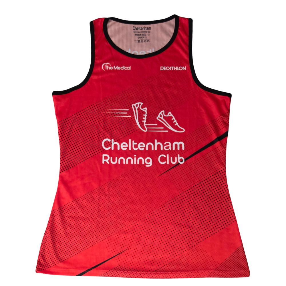 The Women’s Red Training Vest is the perfect companion for any runner seeking peak performance and comfort during the summer months. Order yours today and experience the freedom and breathability that will take your warm-weather runs to the next level, all while showcasing your love for the Cheltenham Running Club!